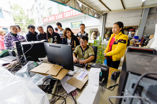 11月1日,络绎不绝的客户让四川省雅安市石棉县迎政乡的“邮乐购”站点显得热闹非凡。