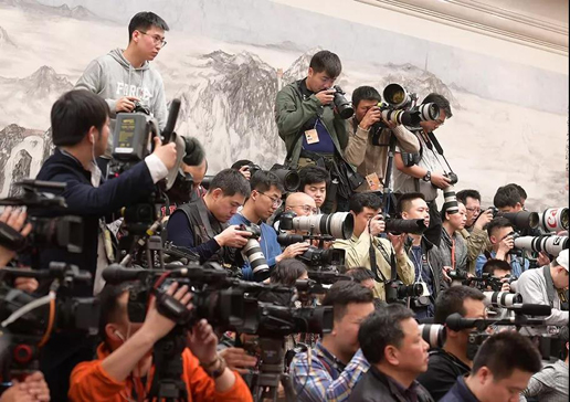 为了能够拍摄到好照片、采访到委员,各媒体的小哥哥小姐姐们可谓绞尽脑汁,有的记者带了简直比高跷还要高3厘米的梯子,有的记者笑脸如花,先把问题抛出去,话筒递上去,根本不给政协委员拒绝的机会。有的政协委员刚接受完采访,第二波记者又来了,一波接着一波。