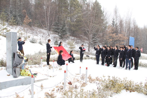 双鸭山市分公司党员在“十二烈士山”墓碑前进行了献花、扫墓、重温入党誓词和宣读倡议书等,通过重走抗联路,寻访革命先烈的红色记忆。□姜雪瑶 摄影报道