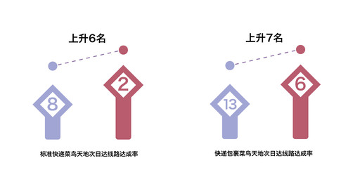 通过设置廊坊区域集散点,缩短了距离,提高了次日递率。从保定到天津的邮路,原来的路由是保定到石家庄再到天津,里程为590公里,调整后的路由是由保定到廊坊再到天津,里程为249公里。从衡水到天津的路由是从衡水到石家庄再到天津,里程为586公里;调整后的路由从衡水到廊坊再到天津,里程为405公里(见图表3)。至4月底,标准快递菜鸟天地次日达线路达成率行业排名第2,较提速前上升了6名;快递包裹菜鸟天地次日达线路达成率行业排名第6,较提速前上升了7名(见图表4)。