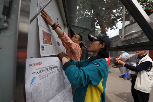 东四邮局热情的服务和任劳任怨的精神,让周边百姓深切感受到社会大家庭的温暖和谐,也传递着良好的社会风气。图为东四邮局投递员刘小梅帮助社区志愿者更换阅报栏报纸。