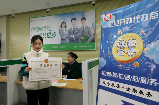 11月27日上午,某商务中心韩女士从邮储银行山东省枣庄市峄城区支行帮办人员手中接过营业执照,开心地说:“家门口的银行也能办营业执照,这个创新好!”