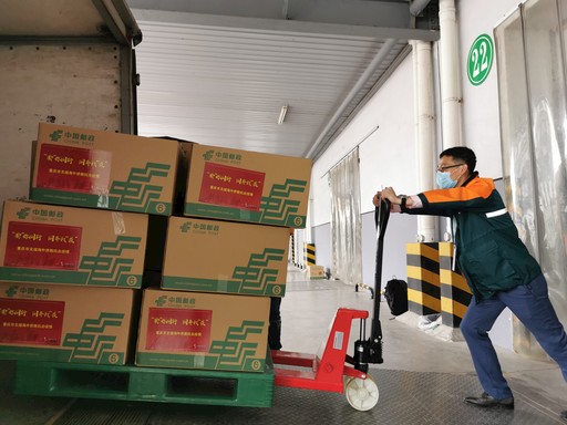 4月13日15:00,重庆市支援海外侨胞防疫物资发送仪式举行,贴有“‘渝’你同行 同舟战‘疫’”的120余箱总价值200万元的“爱心包裹”正式启运。