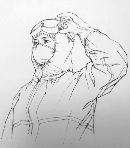 《众志成城 抗击疫情》邮票中医护工作者草图。