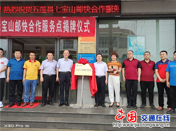 6月23日,日照市首个“邮快合作”服务点在五莲七宝山揭牌成立。日照市邮政管理局局长马守东、副局长范成瑶,日照市邮政分公司副总经理(主持工作)尤洪峰、副总经理李炳延,五莲县邮政分公司副总经理(主持工作)王健军,五莲县百世、圆通等快递企业主要负责人出席揭牌仪式。