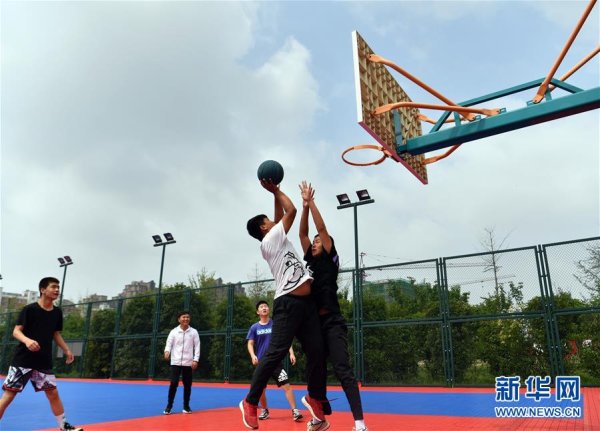 市民在许昌鹿鸣湖体育公园打篮球(6月18日摄)。 新华社记者 李嘉南 摄