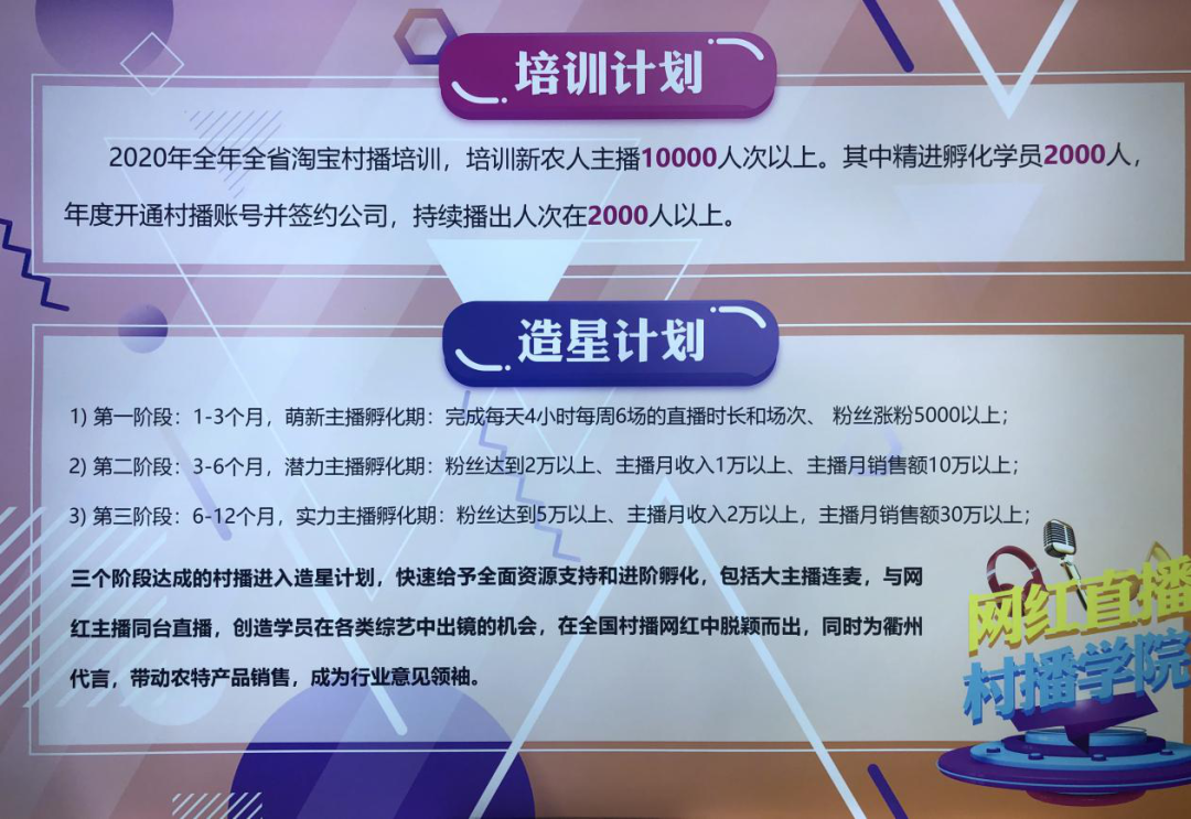 “多肉小王子”“柚子姐姐”“妃妃”“面条掌柜”,经过“村播学院”的培训,一批直播尖子冒了出来,成为了“村播网红”。当地最新的一份“村播”造星计划,今年打算对一万名农业从业者进行培训,打造一批成熟的“农民主播”,单个主播粉丝量5万以上,月收入达2万元以上,直播带货月销售额30万元。