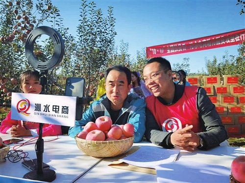 在第七个全国扶贫日到来之际,山西省沁水县邮政分公司联合县电商中心、县经贸工委等单位助力在郑庄镇举办的南朗苹果直播带货活动,帮助朗壁村村民脱贫致富,展现央企风范。
