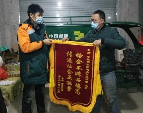 “您捡到包后及时归还,我们非常感谢……”12月11日,拾金不昧的邮政快递小哥王新,收到了失主李女士家人的当面致谢以及一面致谢锦旗。