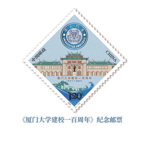 中国邮政定于2021年4月6日发行《厦门大学建校一百周年》纪念邮票一套1枚,邮票面值为1.20元。