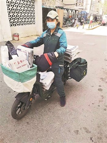 王浩然是北京安外邮政投递部的一名送报员,她每天负责将一份份报纸送到服务区内的订阅者手中。王浩然所在的投递部服务半径为3.5公里,“平均每天送100多户,一天中大部分时间都在外面跑,上午送日报,下午送晚报,每天在投递部和责任片区之间至少跑三个来回,20公里起步。”王浩然告诉记者。