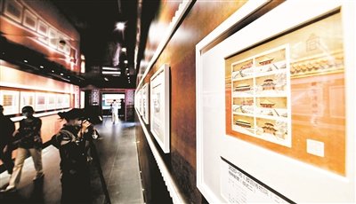第二单元“美轮美奂”展现紫禁城主体建筑群,辅以邮票设计原稿、雕刻稿、古建影像,再现紫禁城建筑魅力。