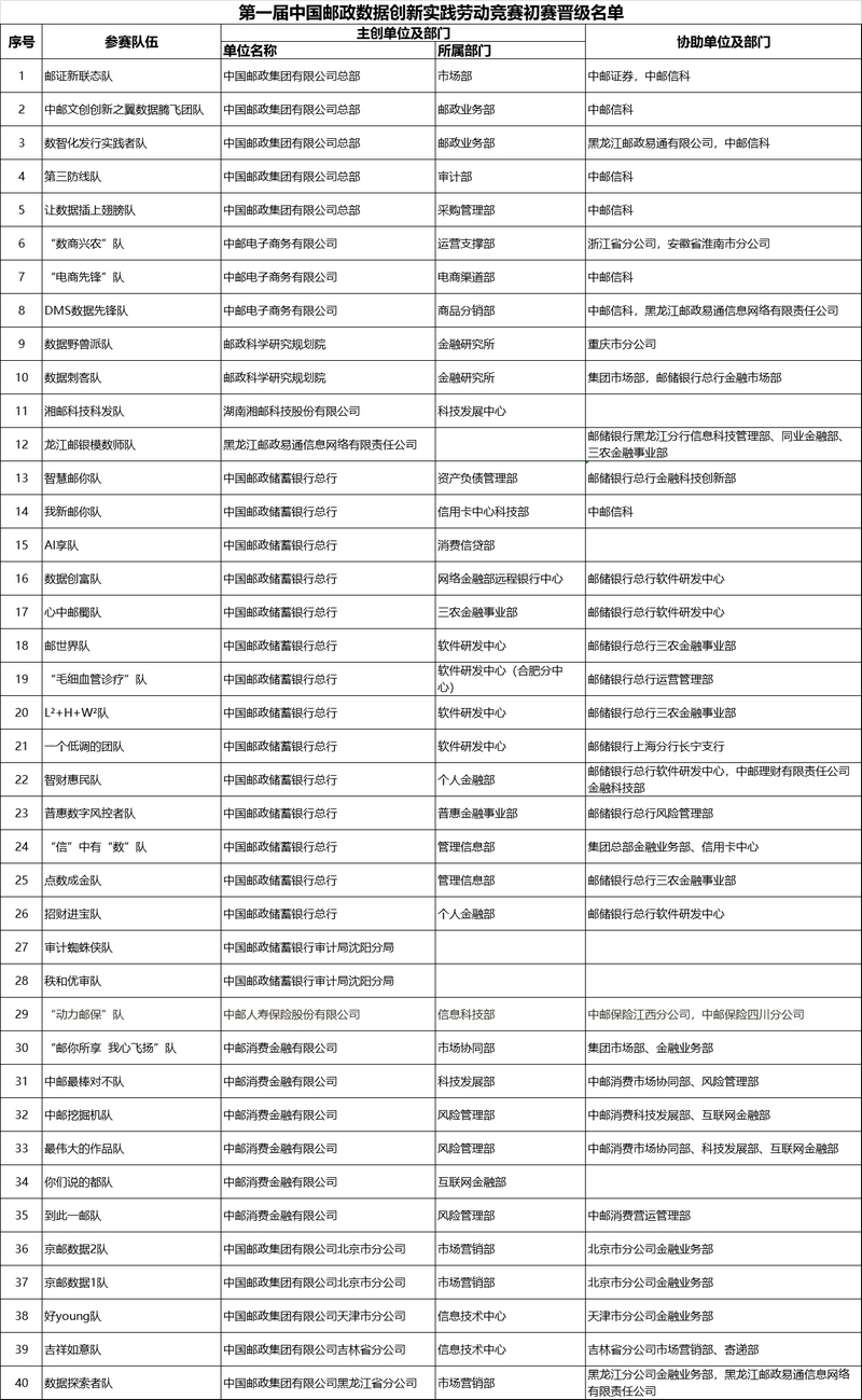 第一届中国邮政数据创新实践劳动竞赛初赛顺利落下帷幕