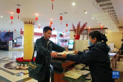 2月1日,谢菲俊在投递邮件的路上给游客指路。