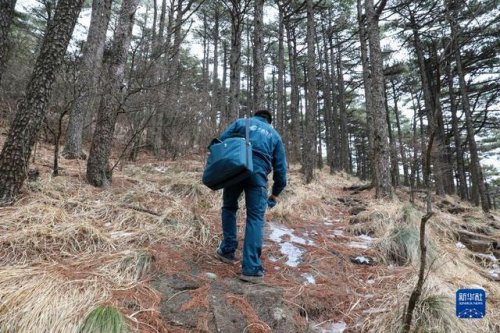 2月1日,谢菲俊在投递邮件的山路上小憩。