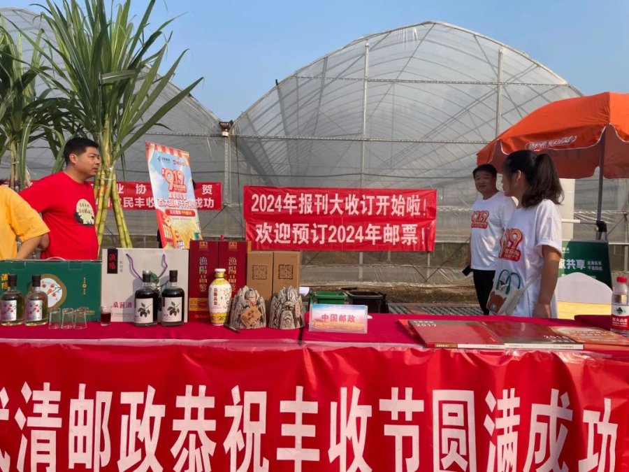 近日,天津邮政武清区分公司携邮乐农品,参加武清区南蔡村镇人民政府在丁家??村金色麦田举办的“庆丰收 促和美”农民丰收节主题活动。