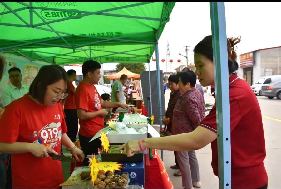 活动现场,静海区分公司设置展台,推出牛顿庄园苹果、独流老白干、蓟州核桃、芦台春等地方特色农产品。邮政员工们身穿“919”电商节T恤衫,积极向到访群众广泛宣传邮政金融、文传、寄递等重点业务。为了活跃气氛,区分公司还举办了919电商节、月满中秋、扫码入会等活动,吸引许多客户前来咨询购买。