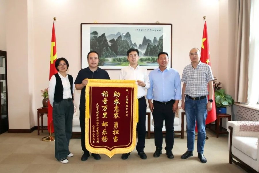 9月28日,天津市优质小站稻开发有限公司董事长聂飞将一面锦旗赠送给天津市邮政分公司,感谢天津邮政9月24日以“津津邮味 稻米飘香”为主题,在邮乐平台举办的大型直播活动中,将津南小站稻作为主打产品,实现订单破万件,交易额达到62.2万元的骄人业绩。天津邮政分公司副总经理刘彦波接受锦旗。市分公司渠道平台部总经理李晓英、津南区分公司总经理张志宏陪同。