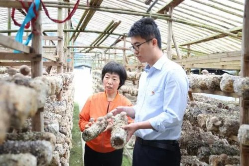 邮储银行武义县支行客户经理走访香菇种植基地,现场了解种植户经营中遇到的问题和困难。