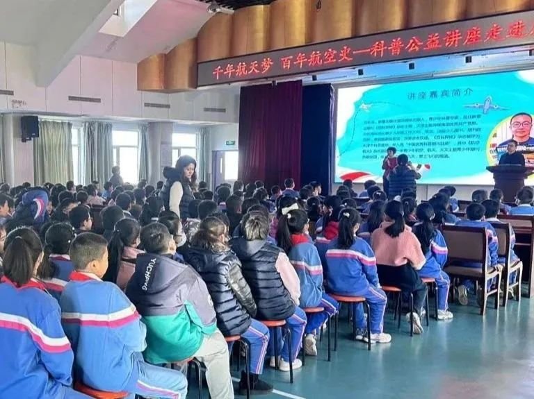 活动邀请到本市著名的青少年科普老师讲解航天航空知识。将近两个小时的讲座,同学们听得非常仔细认真,与主讲人积极互动,一张张稚嫩的脸上透露出对“冲上云霄”的无限渴望。