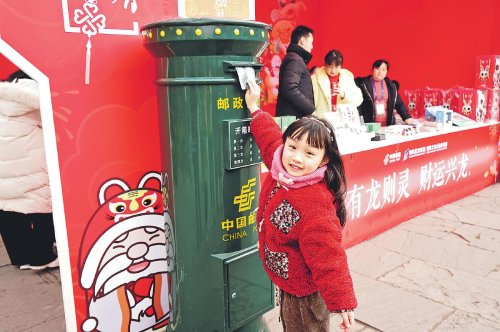 2月8—24日,由四川省德阳市人民政府主办的“祈福文庙·龙腾德阳”甲辰年德阳文庙新春游园会在文庙商圈举办。德阳市邮政分公司以德阳特色文创产品为依托,在文庙景区内开设“德阳文庙主题邮局”,为广大市民与游客提供邮政特色明信片、集章册、文创产品销售与集章集戳、游园指南等全方位服务。德阳邮政特别为此次游园活动制作主题纪念封6000枚,在现场放置了邮筒,让市民与游客将新春祝福寄往全国各地。□王一 俞颖 摄影报道