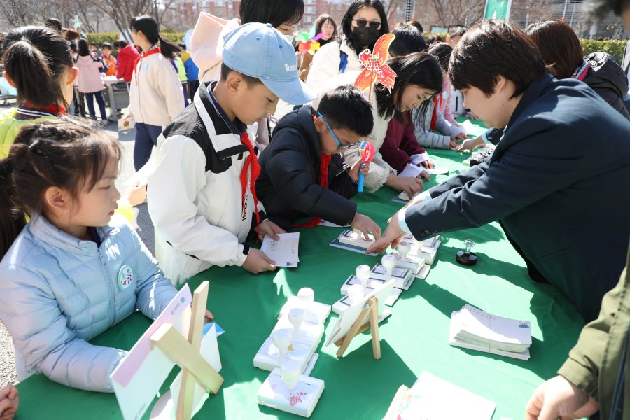 明信片集章、二十四节气邮政主题拍拍乐、纸鸢DIY、风车制作、“春牛”涂鸦……百余名少年儿童通过多种与春分节气相关的趣味体验活动,学习节气文化知识,领略传统二十四节气的智慧与魅力,感受中华优秀传统文化的博大精深。