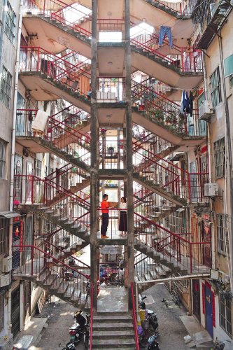 南宁市邮政分公司投递员在鸳鸯楼投送邮件。□中国邮政报记者 贾红伟 摄