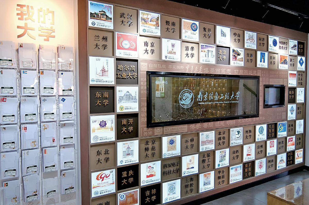 高校邮票展示墙激励学子努力考取目标院校。 □查叶娟 摄