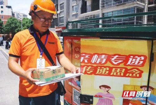 7月19日,早上八点,户外温度已超过30℃,在常德市西区揽投部,快递员何中清已经忙着卸货、分拣、扫描和装车了,不长的时间汗水便将工作服打湿。何中清是该网点资历最老的快递员,从事邮政快递行业已有十六年时间。九点,何中清驾驶着三轮车,带上公司配备的防暑装备,开启了他一天的“City Walk”。