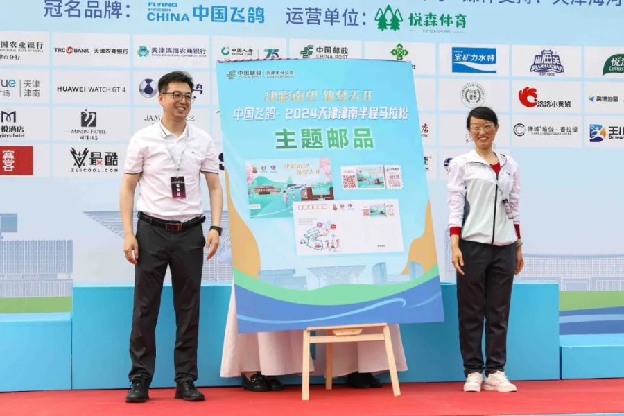 津南区副区长刘焱与天津市邮政分公司副总经理刘彦波为邮资机戳和主题明信片揭幕。赛事组委会为天津邮政授牌“战略合作伙伴”。