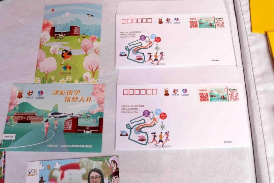 为助力此次赛事活动,津南区分公司在位于天津职业技能公共实训中心的起跑点位,集装箱特色街区“绿动BOX”职工短程跑点位,以及天津大学北洋园校区沿途点位,设置了三个邮政服务点位,将邮文化与津南半马元素相结合,为参赛人员提供包括文创产品选购、免费主题邮戳加盖、DIY明信片打印等服务,同时现场开展了“绿色小站稻、健康马拉松”邮乐直播活动,为马拉松爱好者带来智能化、沉浸式的邮文化体验。