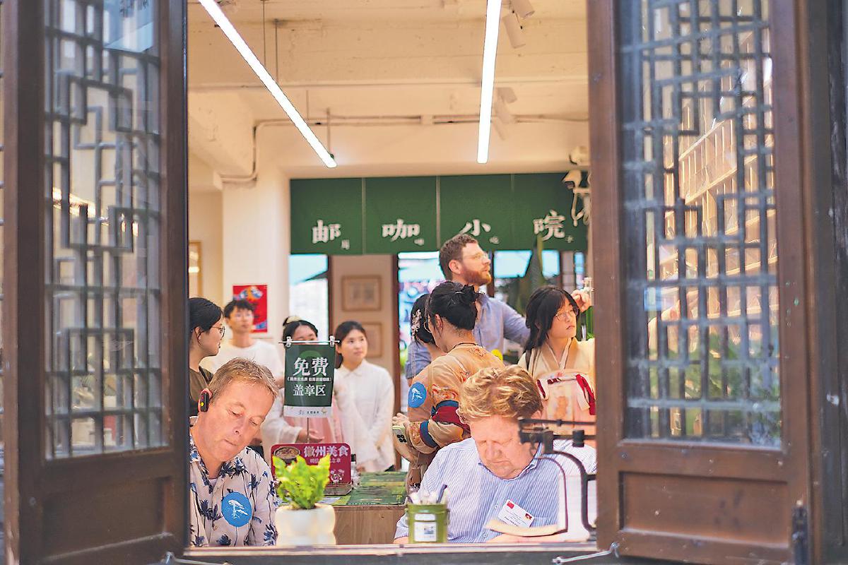 “旅邮”活动丰富多彩。明确“一季一主题、一月一活动”规划,邮局内设有徽文化体验区,以徽派建筑元素、徽州古村落的壁画等营造浓厚的文化氛围,手绘团扇体验、徽州版画创作等常态化的主题活动,让游客获得美的享受。宏村主题邮局内经常举办直播活动,设置徽茶品尝、歌手驻唱等互动环节,激发主题邮局的生命力,让“旅邮”成为可体验的文化、能带走的风光。“旅邮”体验火爆出圈。宏村主题邮局的优质服务赢得黄山市委、市政府的高度认可,被指定为黄山市外宾定点茶歇接待场所,助力打造黄山国际会客厅。今年5月30日,德国下萨克森州考察团到达宏村主题邮局,现场选购黄山特色风光明信片并邮寄,向全世界讲述黄山故事,展示中国文化的魅力。同时,该邮局常态化通过小红书文艺青年种草、抖音粉丝大力传播、旅游达人微博分享和省、市、县文旅官方账号多次推介等途径,扩大知名度。