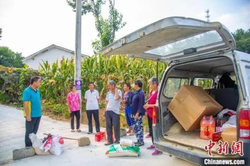 黄德印(左一)为村民带来物资。张倩龙 摄