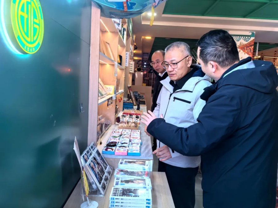 在独乐寺主题邮局,石纯斌总经理详细了解了主题邮局经营模式及文创产品销售情况。他指出,要充分利用旅游资源带来的客户流量,通过策划营销活动,提升主题邮局知名度,促进文创产品销售上规模。