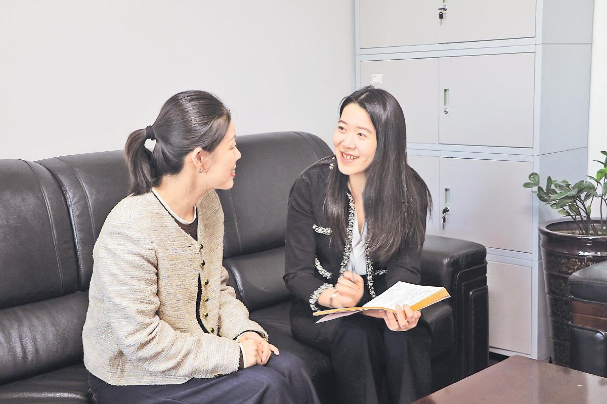 徐苑(右)走访客户,调研业务市场。
