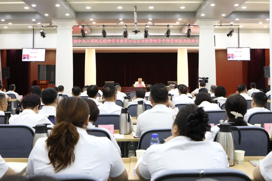 7月7日,市分公司党委组织开展"深入贯彻中央八项规定精神学习教育读书班暨领导干部管理能力提升培训班"。党委书记、总经理石纯斌作开班动员,并讲授专题党课。市分公司副总经理王强主持开班仪式。