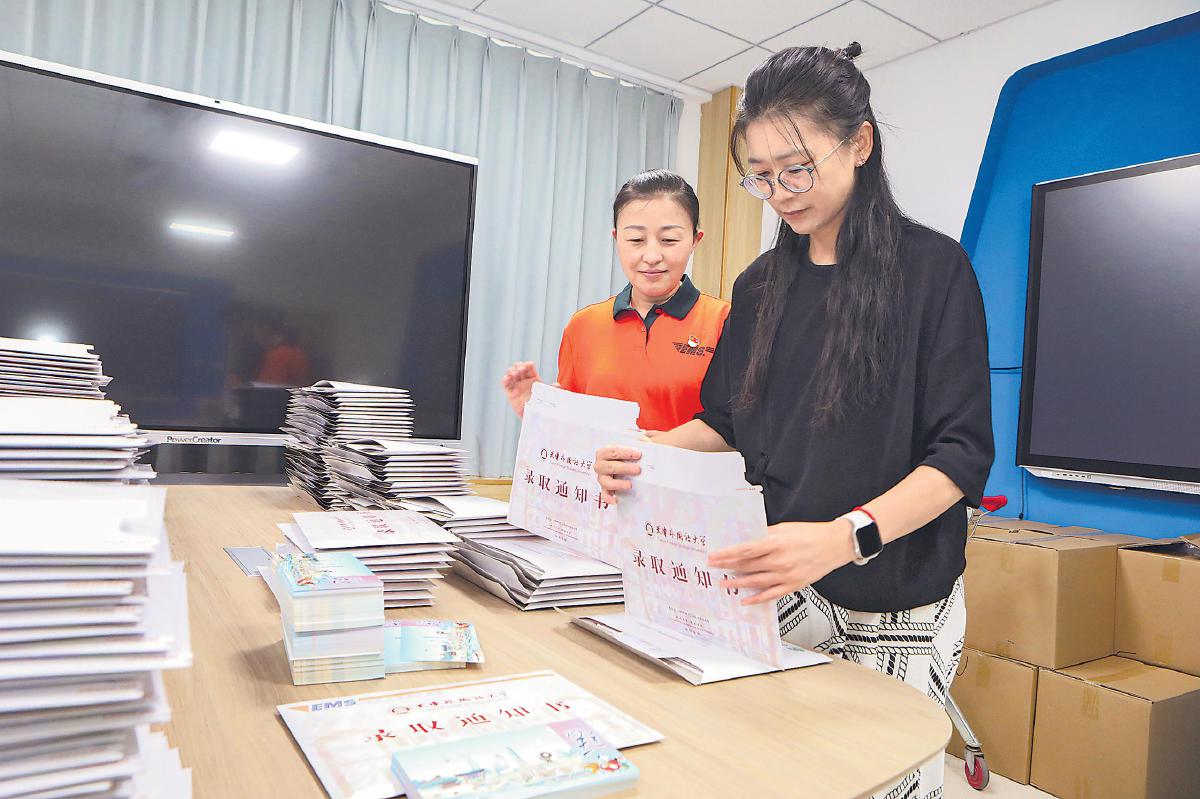 7月15日,受天津市委宣传部、市教委委托,天津市邮政分公司设计发行的“河海津韵”明信片,随着南开大学、天津大学等51所本科及高职院校的17.4万份录取通知书一同寄出,为大一新生送去天津这座城市对莘莘学子的诚挚欢迎,助力打造“你好天津”城市宣传品牌,增强青年群体对天津的文化认同,为吸引和留住人才提前营造良好氛围。