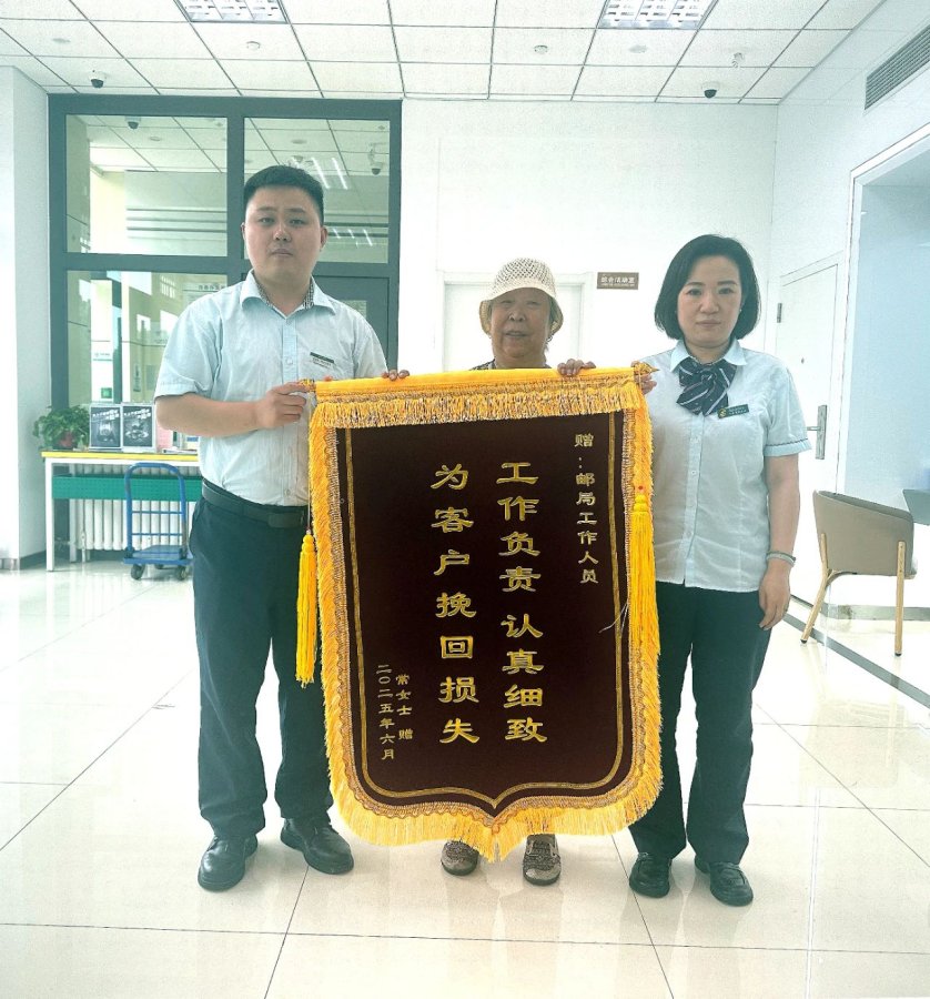 近日,家住北辰区辰昌路某小区的常女士为北辰区分公司辰昌路营业所送来一面印有“工作负责 认真细致 为客户挽回损失”的锦旗,感谢邮局员工凭借高度警觉的职业素养与当地派出所联手,成功拦截网络诈骗,为她挽回近万元经济损失。