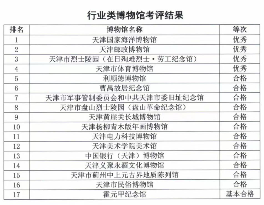 为加强博物馆行业管理,规范引导博物馆高质量发展,根据《博物馆条例》《天津市博物馆运行考评办法》等要求,天津市文化和旅游局组织开展了2023年度天津市博物馆运行考评工作。
