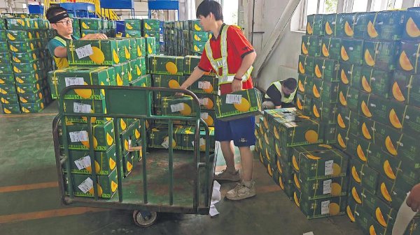 邮政寄递服务团队根据果品特性定制寄递解决方案,保障果品质量。 □李想 摄