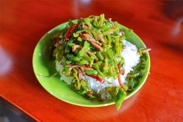 午饭时间,乡政府旁的索多藏餐馆里挤满了来用餐的人。有观光的游客,有像我们一样到这里工作的外乡人,还有本地的老百姓。记者和曲巴一起回忆起10年前在普玛江塘只能吃面包、泡面的采访经历。曲巴说:“现在乡上开了3家餐馆,大家也能吃上热乎乎的饭菜了。”记者点了一份青椒肉丝盖饭,曲巴要了一份小白菜盖饭。我们吃得一干二净!
