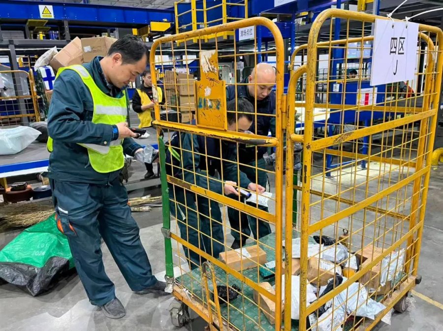 天津邮政网运各级领导干部身先士卒,每日召开调度会,实时监控双场地作业数据,动态调整人力与运力配置;党员突击队冲锋在前,各岗位人员密切配合,确保“人停机不停、货畅其流”,高效应对邮运生产压力。