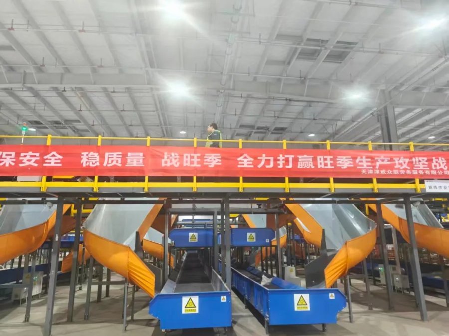 为确保旺季邮件拉得进、运得出,天津邮区中心进、出口双场地并行运行,物理隔离进出口邮件处理空间,避免作业交叉干扰。车间分拣机24小时运转,精准完成邮件卸车、分拣、集包等操作,实现日均处理量百万件,峰值超110万件,极大地缓解了作业压力,避免邮件积压。