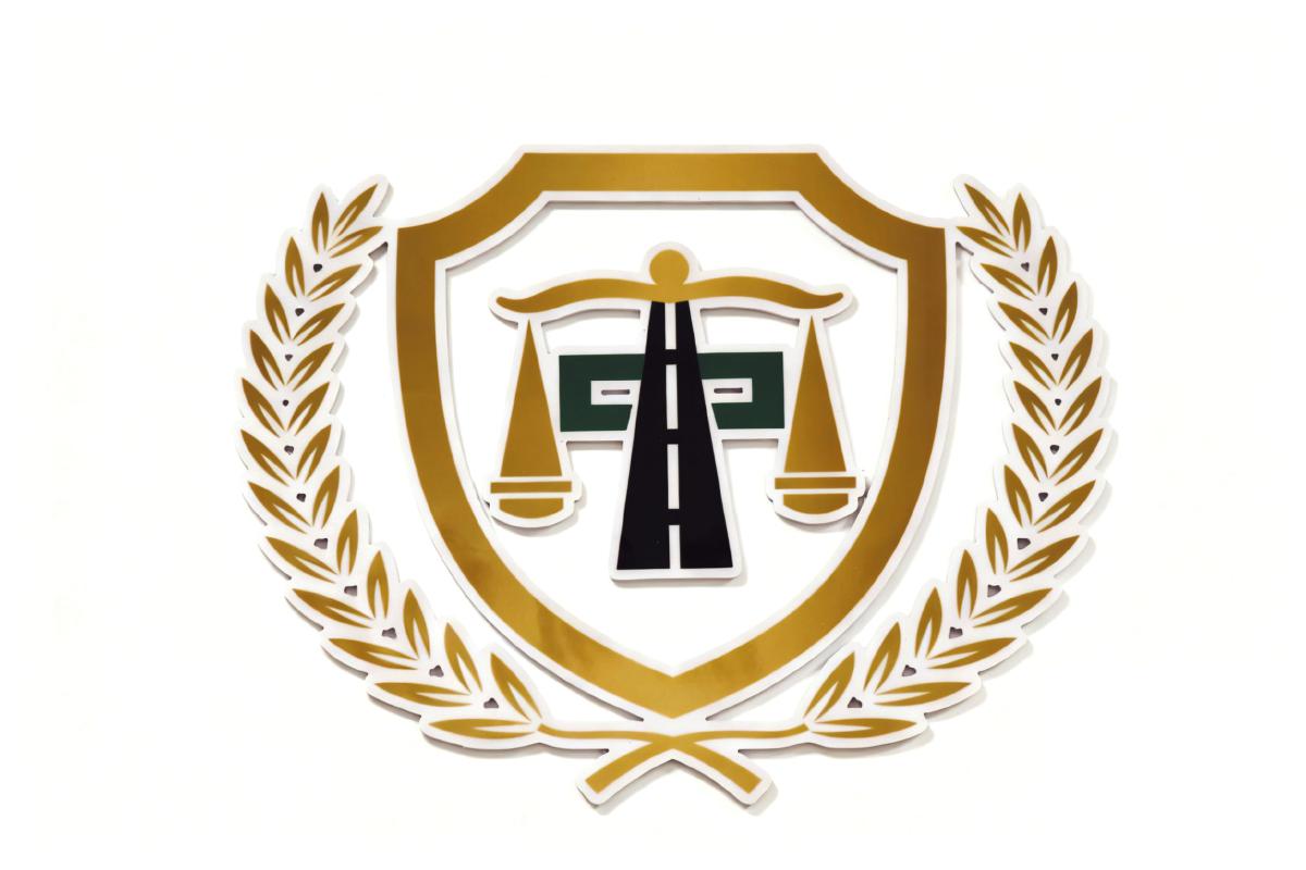 法邮服务站的专属标识以盾牌和麦穗为底,融合了法院象征公平的天平标志与邮政标志性的绿色。