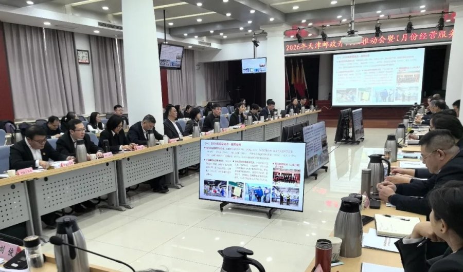 1月22日下午,市分公司召开2026年天津邮政开门红推动会暨1月份经营服务分析会,全面梳理当前核心任务,明确发展方向及工作重点。市分公司党委书记、总经理刘俊围绕预算管理、开门红重点工作推进及安全生产等工作提出要求,动员全体员工要实干攻坚,确保一季度各项工作落到实处。市分公司副总经理王强、许亮、白海龙出席会议,结合各自分管业务,对开门红关键指标、重点工作做提示。市分公司领导班子成员,各区分公司主要负责人,市分公司机关部室、信息技术中心、国际营销中心、物流业务分公司、“三网”改革工作专班、服务乡村振兴工作专班相关负责人参会。