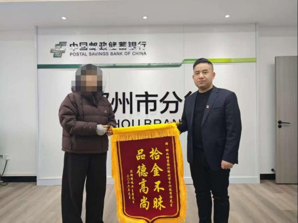 为表由衷的谢意,詹先生特意定制了锦旗,委托妻子专程送到市分行。这面锦旗,不仅体现了一位普通员工的善良,也映照出邮储银行服务的温度。
