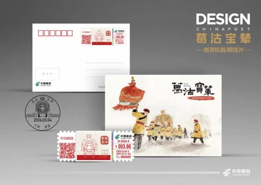 新春时节,国家级非物质文化遗产——葛沽宝辇会即将精彩亮相。为传承中华优秀传统文化,让市民近距离感受非遗魅力,天津邮政将于3月4日(正月十六)在葛沽文化市集,举办《葛沽宝辇》彩色数字粘贴型邮资机戳启用仪式,诚邀广大市民赏民俗、寄祝福,共赴这场独具津门特色的民俗盛会。