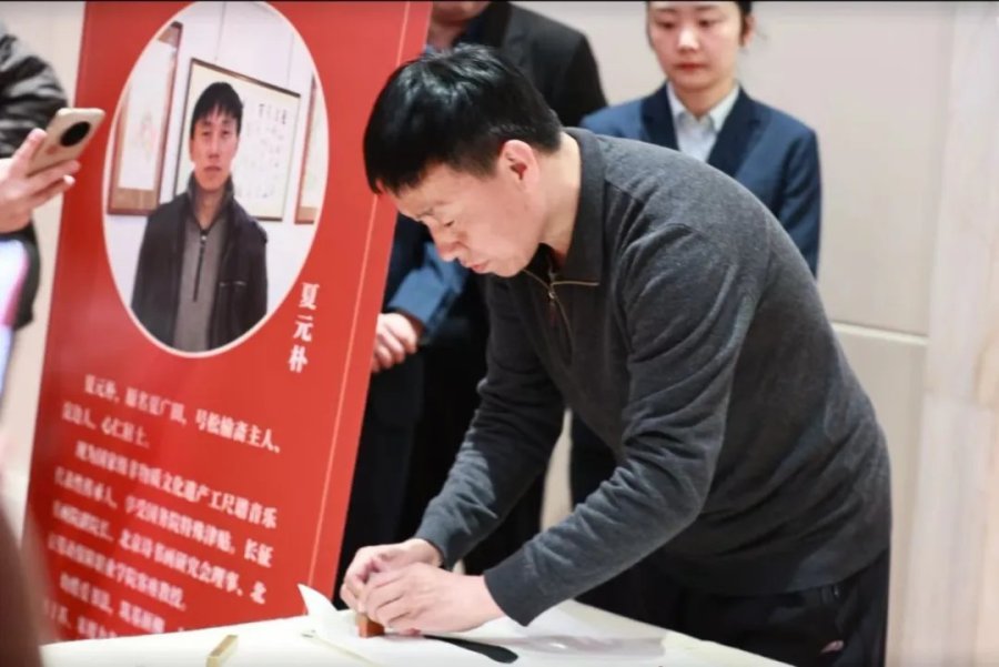 夏元朴结合书法艺术与非遗文化开展交流,并现场创作书法作品赠送给客户。