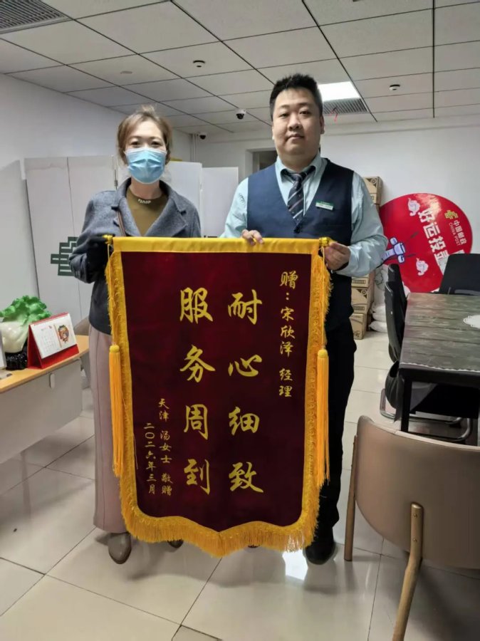 客户对宋欣泽热心为民的服务态度深表感激,特意送来锦旗表达谢意。此次暖心服务,不仅解决了客户的急难愁盼,更展现了邮政员工较高的职业素养和服务温度。