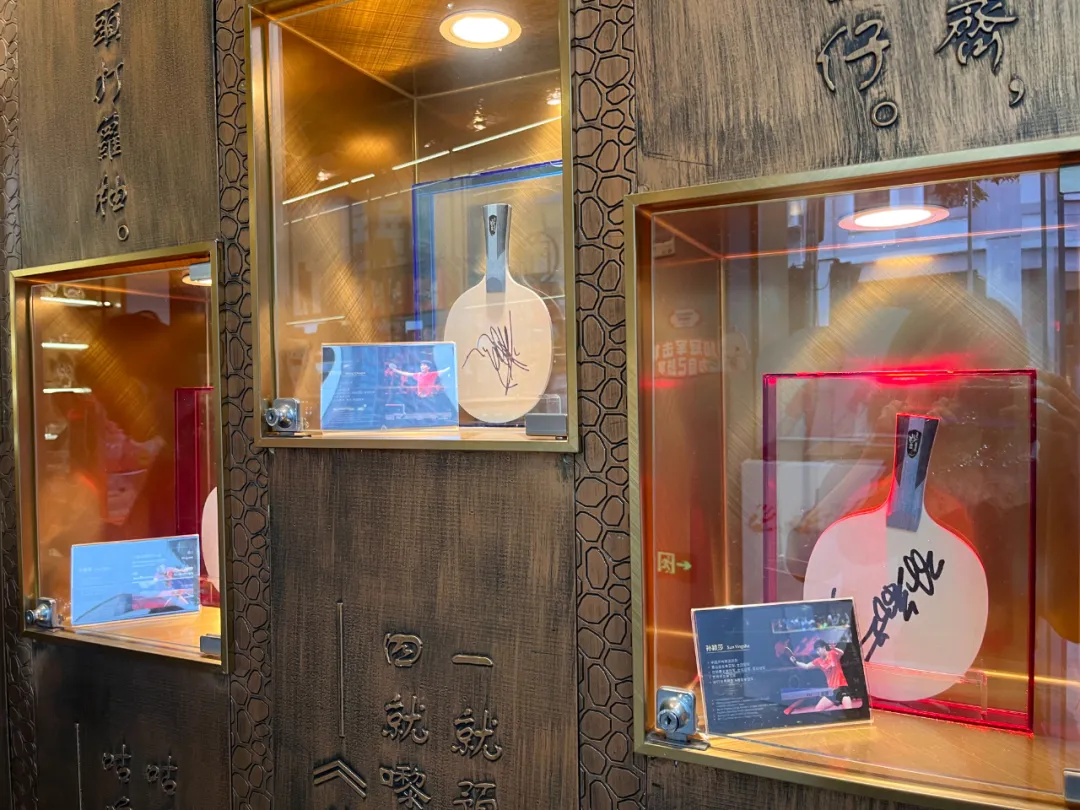 —明效应,签名球拍见证荣耀。邮局内陈列孙颖莎、王楚钦、王曼昱等多位乒乓球世界冠军的签名球拍,吸引众多体育迷驻足,近距离感受国球风采与拼搏精神。